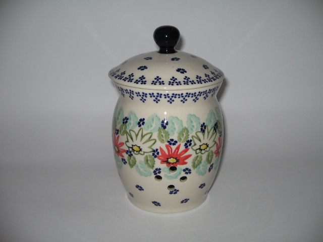 pojemnik na czosnek 1l w dekoracji tradycyjnej MC20 z dwóch stron posiada cztery otwory do wentylacji. średnica 11cm wysokość 18,5cm pojemność 1l waga 0,9kg producent:Manufaktura |